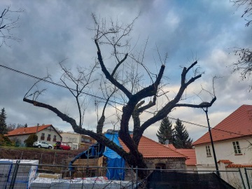„My jsme na jasanu provedli tzv. zdravotní řez hlavně v obvodové redukci koruny, který spočíval v ořezu větví suchých, usychajících a navzájem se odírajících. Tím, jak se větvě odírají, se můžou zlomit. Redukce koruny se dělala i na bočních vykloněných spodních větvích, které jsme zkrátili asi o třetinu jejich délky, čímž jsme je odlehčili a zajistili, že se nezlomí a nespadnou někomu na hlavu. Jasany v Česku často napadá chalera alias voskovička jasanová. Ten místní je však úplně zdravý. Je to silný, nádherný strom. Na jaře uvidíte, že obrazí jak z kmene, tak uvnitř z koruny. U vašeho jasanu rostly bezinky a po nich se vyšplhal až do výšky 10 m plamének plotní. Ten jsme sundali, protože jasanu škodí tím, že zastíní listy a větve poté začnout usychat, čímž se opět stává nebezpečným.